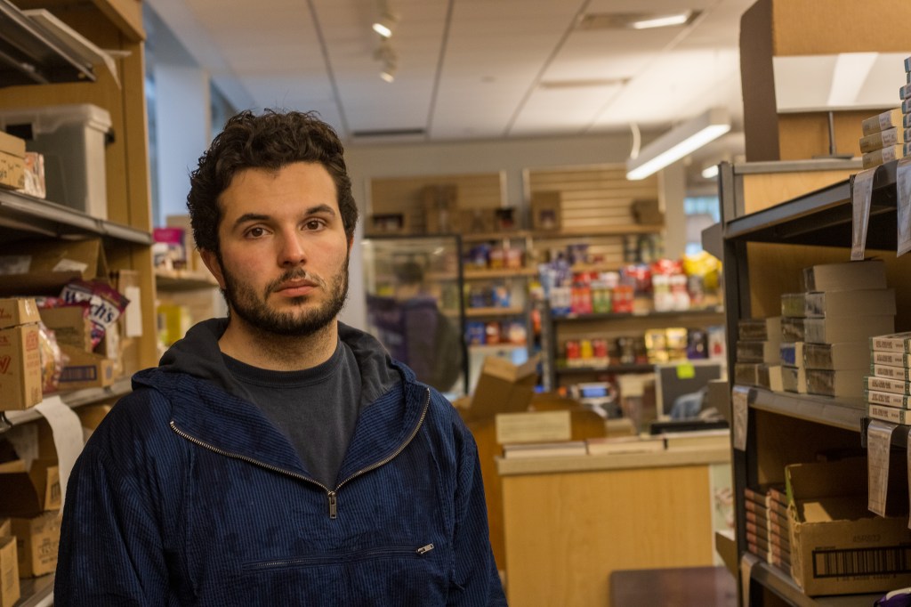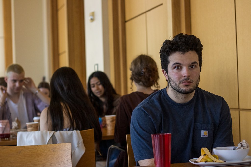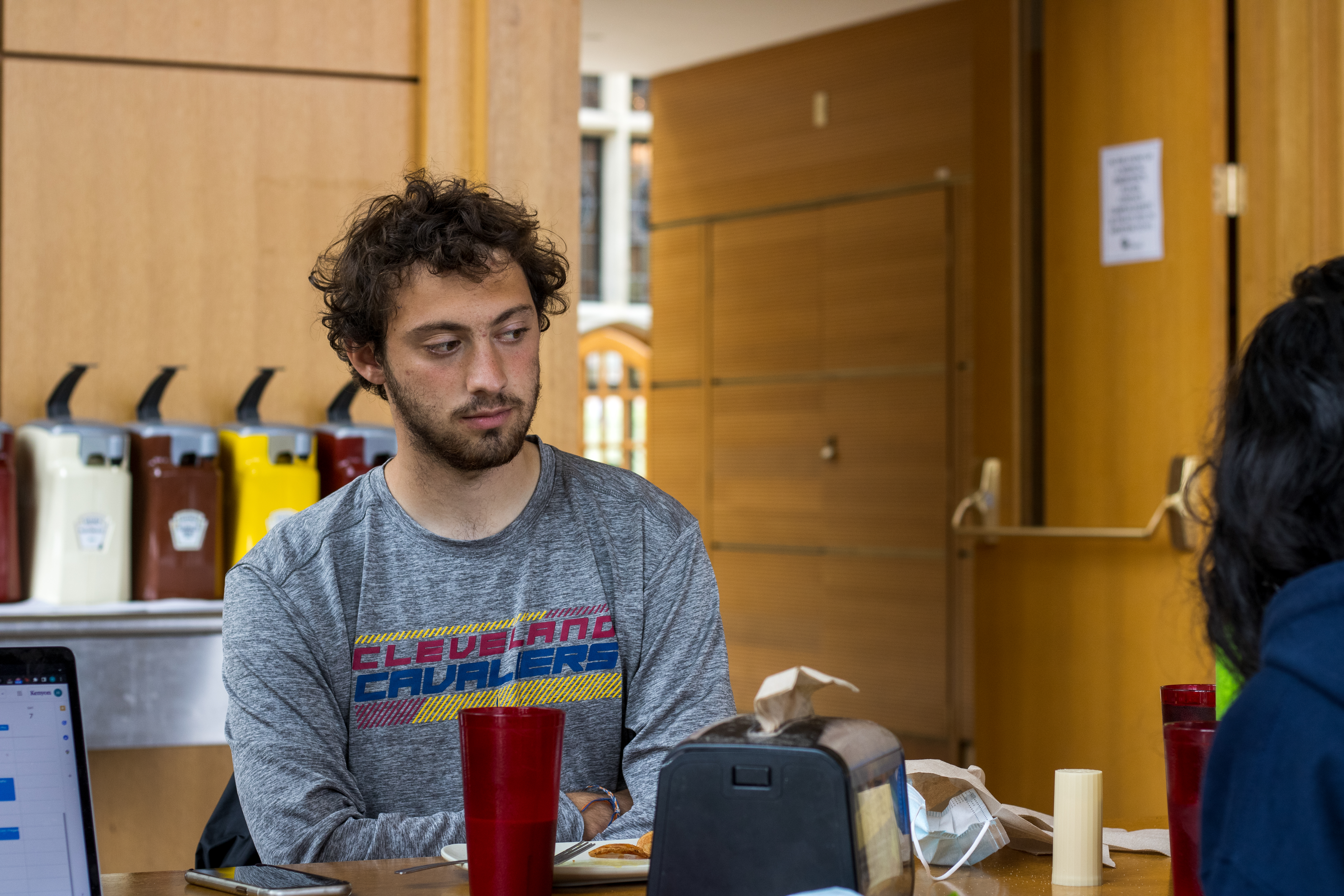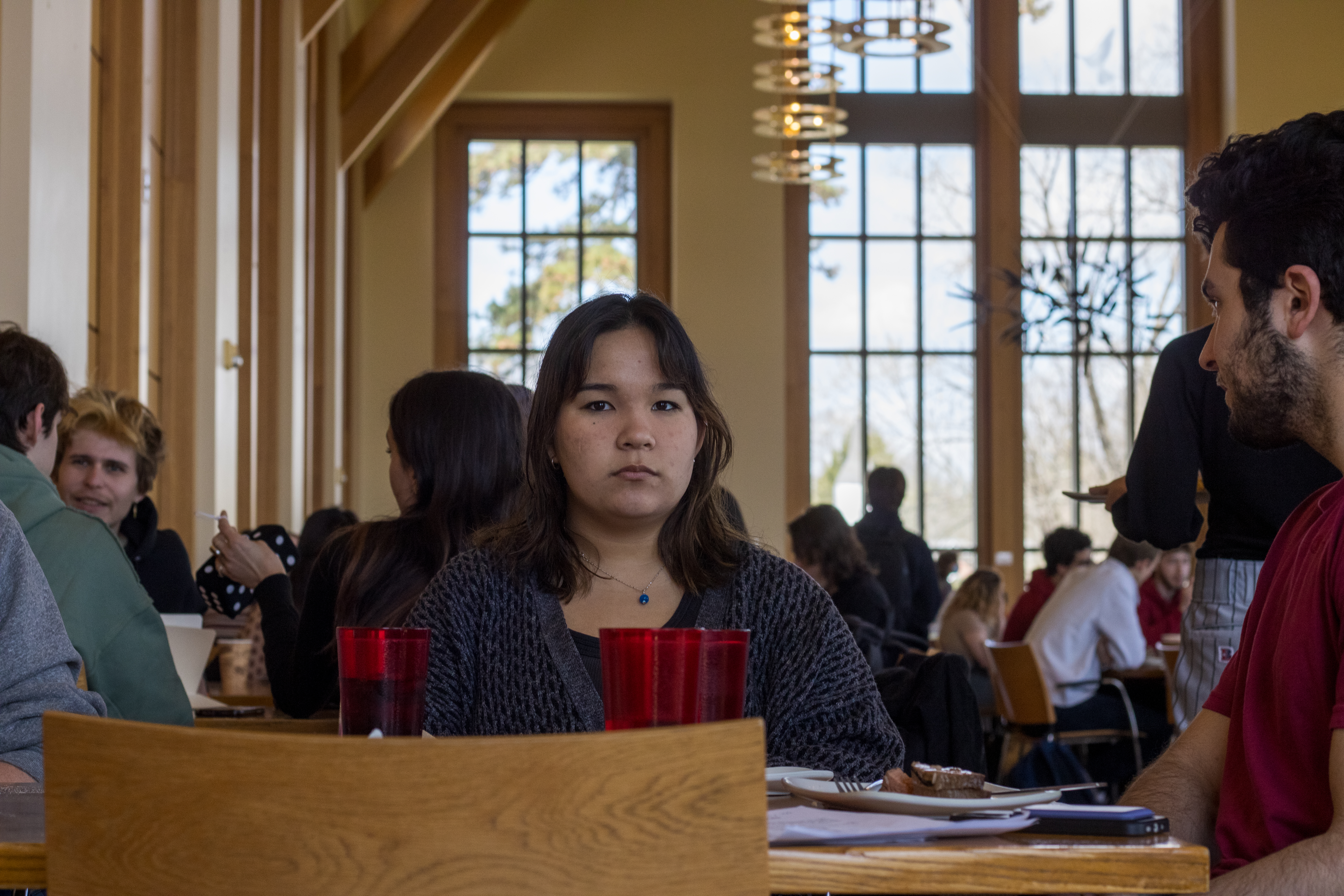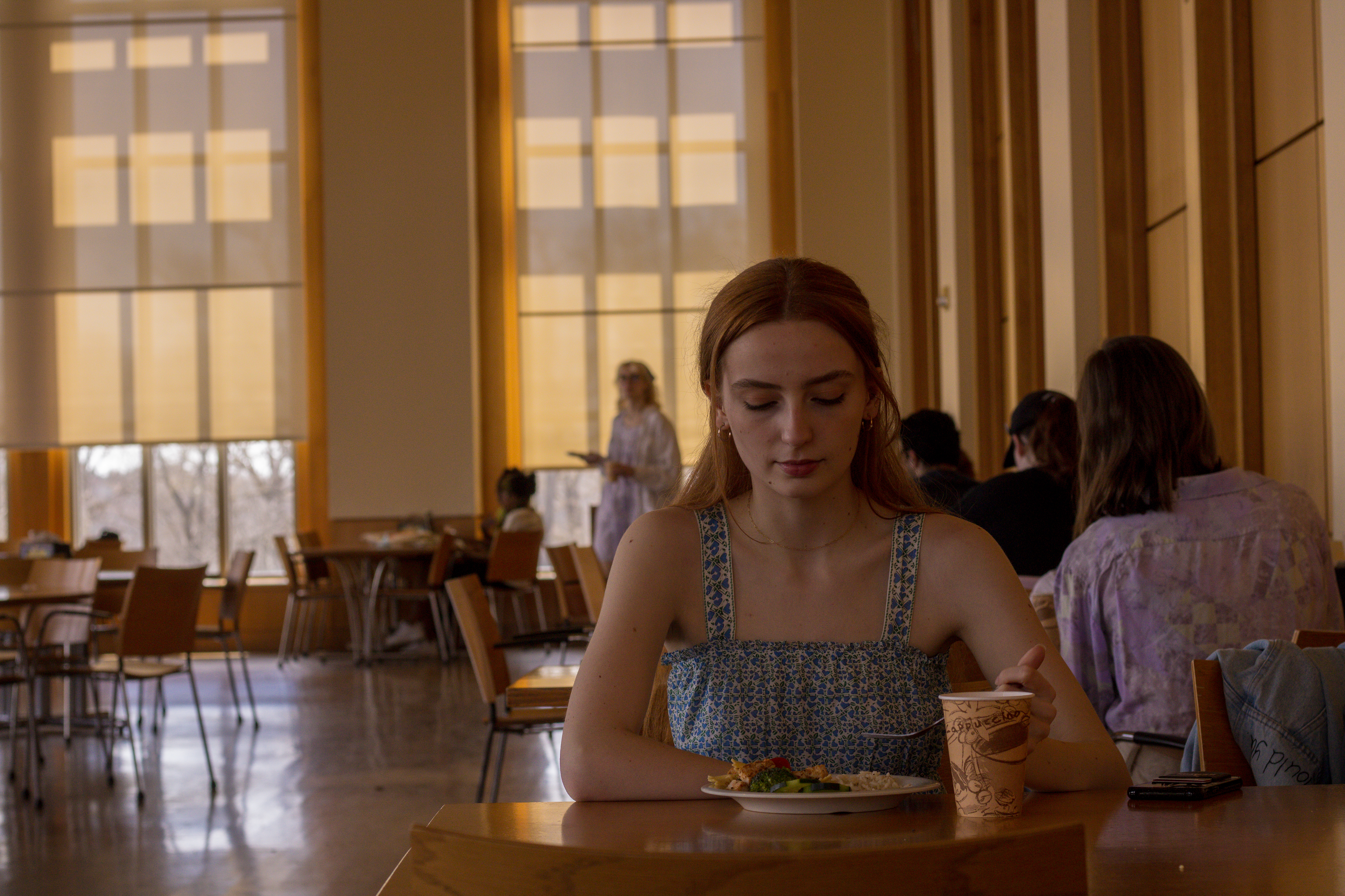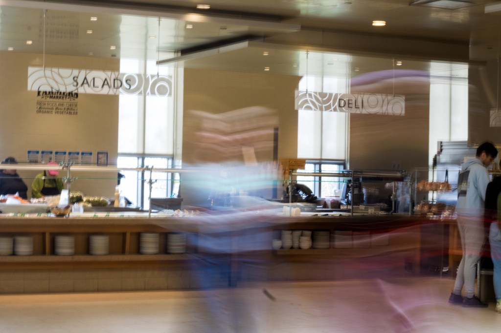 My final project for Color Photography 220.00 attempts to document how I often feel while inside the busy Peirce servery. Sometimes during the busy dining hours, when I walk in to get food, I have this overwhelming feeling of anxiety that makes me want to flee the servery as fast as possible. When it is at its’ worse, I get absolutely no food and leave right away. I’ve gotten better and now when I feel like this, I get some fruits and vegetables and sit down for a while. To start as a background I took photos of my friends in 4 different places during the normal day to day Kenyon experiences: Peirce, Middle Path, Chalmers, and the bookstore.