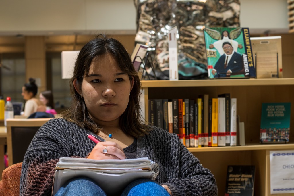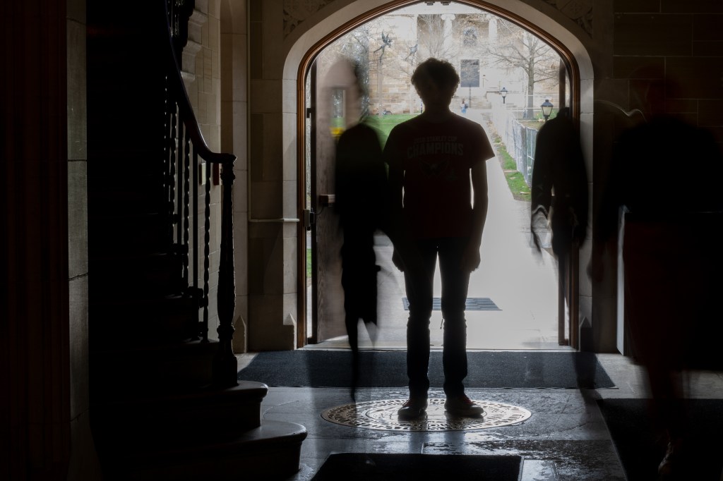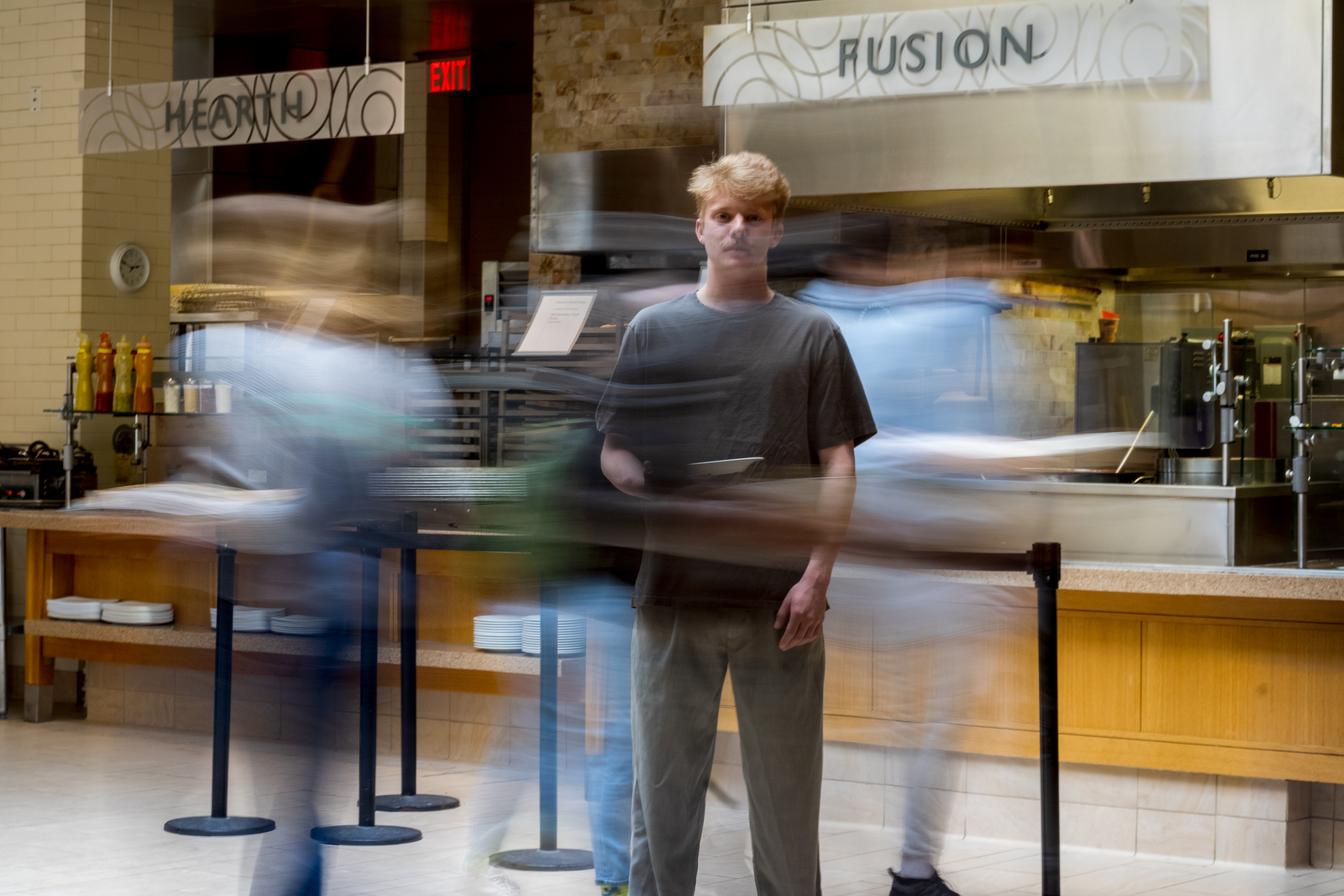 With the larger photos in the middle, I used a long shutter speed with a tripod to be able to capture these shots of people moving through Peirce. The long exposure documents people blending and consuming the frame in a larger-than-life way. I attempt to show the viewer frozen in time, while the world rushes quickly past them, just as the overwhelming Peirce servery consumes me. Special thanks to Claire, Monmita, Joe, Kaya, Lucien, and Jenna.